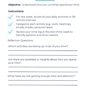 The worksheet also includes exercises for creating a daily schedule that reflects your priorities and goals. With a structured plan in place, you’ll allocate specific time blocks for high-priority tasks, ensuring you stay on track and make meaningful progress each day. Additionally, you’ll incorporate time for breaks, self-care, and unexpected interruptions, fostering a healthy work-life balance.